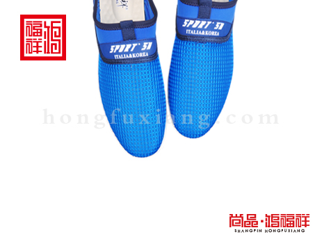鸿福祥布鞋男鞋X252259湖蓝大网鞋