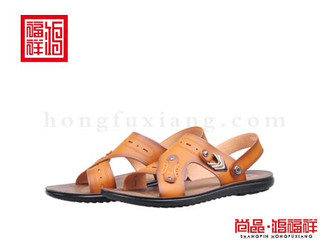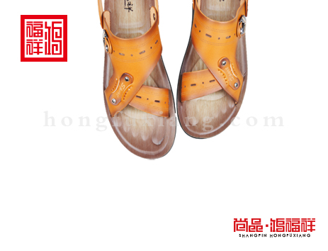 鸿福祥布鞋男鞋X252303土黄凉鞋